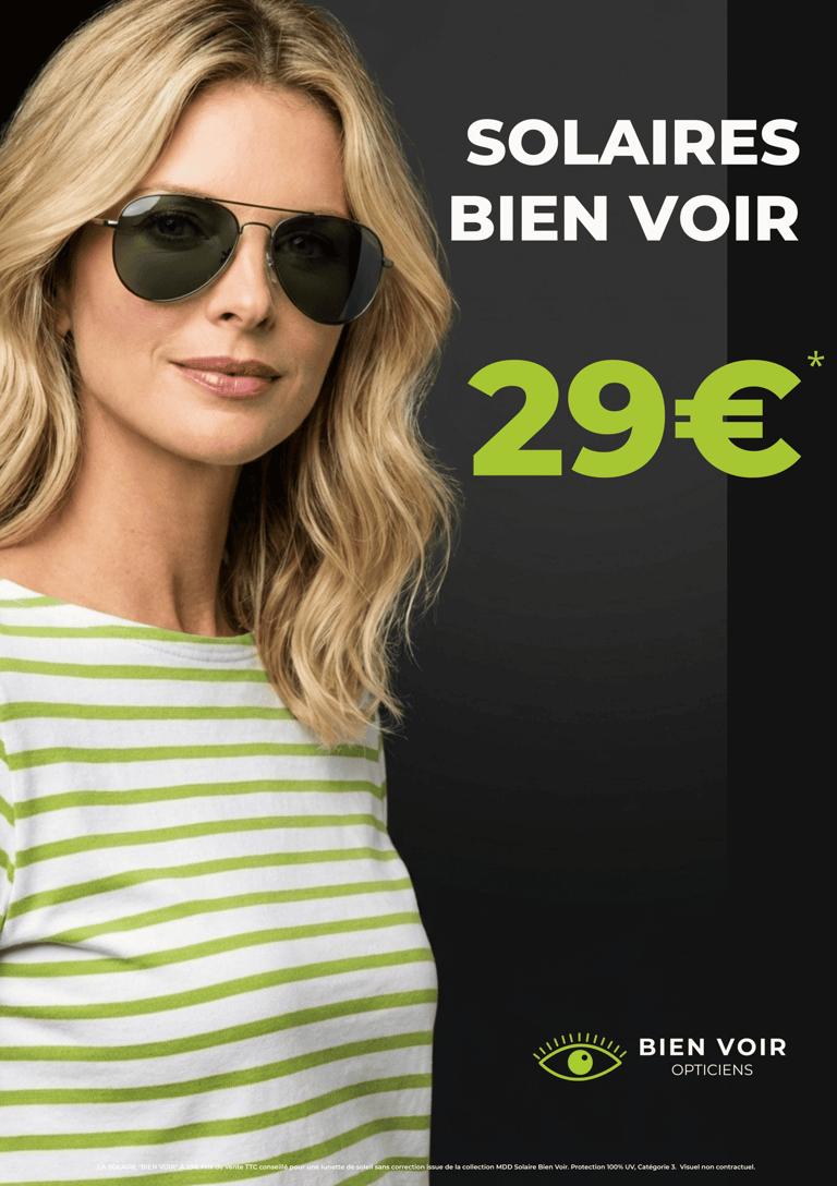 SOLAIRE OFFERTE Pour tout achat simultané d'un an de lentilles de contact (soit 2 boîtes de 90 lentilles journalières ou 4 boîtes de 6 lentilles mensuelles + produits d'entretien associés), une paire de lunettes de soleil vous est offerte. La paire solaire offerte est à choisir dans la collection « Optika Solaire » ou « MDD Solaire » (sélection magasin). Offre valable sur toutes les marques de laboratoires partenaires. Non échangeable contre une remise en espèces. Visuel non contractuel